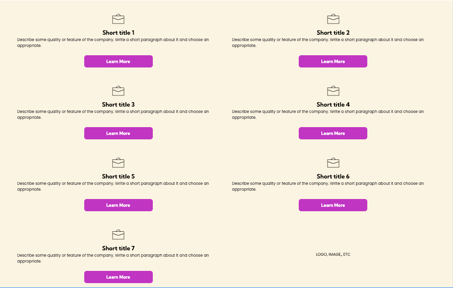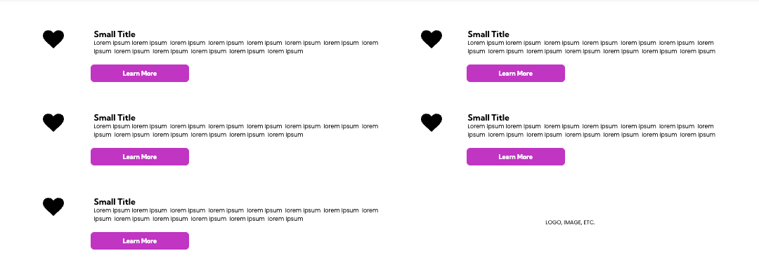 When a section ends with an incomplete row — for example, one or two copy blocks sitting off to one side — it can look uneven and distract from the message. Adjusting the layout or using an image to fill space keeps the design looking polished, intentional, and professional.